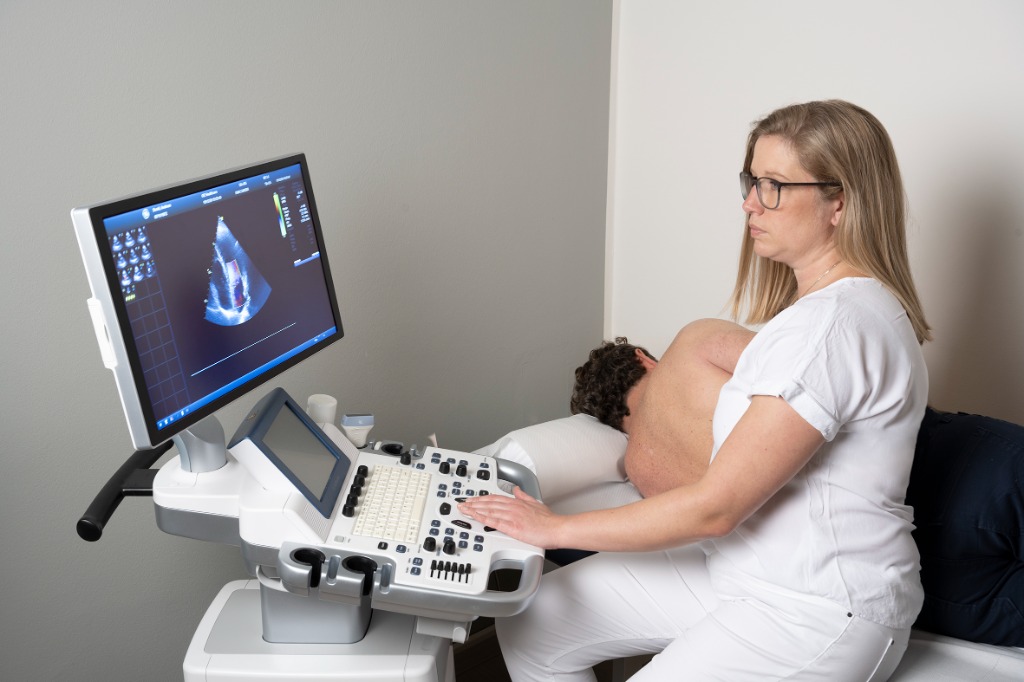 Die Echokardiographie ist eine schonende und schmerzfreie Ultraschalluntersuchung des Herzens. Dabei werden Herzmuskel, Herzklappen und die Pumpfunktion in Echtzeit dargestellt. So lassen sich Durchblutungsstörungen, Klappenerkrankungen, Herzschwäche oder Strukturveränderungen frühzeitig erkennen. Der Herzultraschall ist ein zentrales Diagnoseverfahren in der Kardiologie – völlig strahlenfrei und jederzeit wiederholbar.